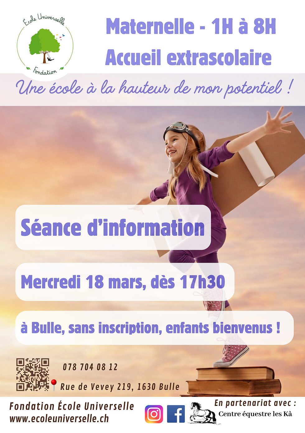 Peu importe comment vous avez entendu parler de notre école, vous êtes les bienvenu.e.s à notre séance d'informations le mercredi 18 mars dès 17h30, rue de Vevey 219 à Bulle.